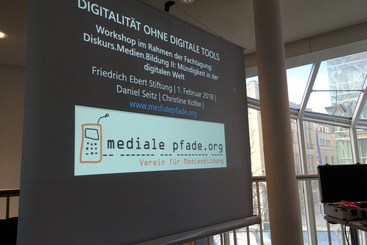Dieses Dilemma bat uns die Senatsverwaltung für Bildung, Jugend und Familie in Berlin im Rahmen einer gemeinsame Fachtagung mit der Friedrich Ebert Stiftung in den Blick zu nehmen. Wir sollten einen Workshop zum Thema DIGITALITÄT OHNE DIGITALE TOOLS konzeptionieren. Ein Widerspruch für einen Akteur wie mediale pfade, der zeitgemäße Medienbildung, in der Regel an kompetenten Technikeinsatz koppelt? Nein, denn auch digitale Themen und anhängige Kompetenzen können sicherlich mit analogen Methoden vermittelt werden. Wir fanden diese Frage sehr spannend und haben uns zu diesem Anlass selbst noch einmal auf Lernreise begeben, intensiv im Kolleg*innenkreis umgehört und viele fruchtbare Ideen zusammengetragen.
