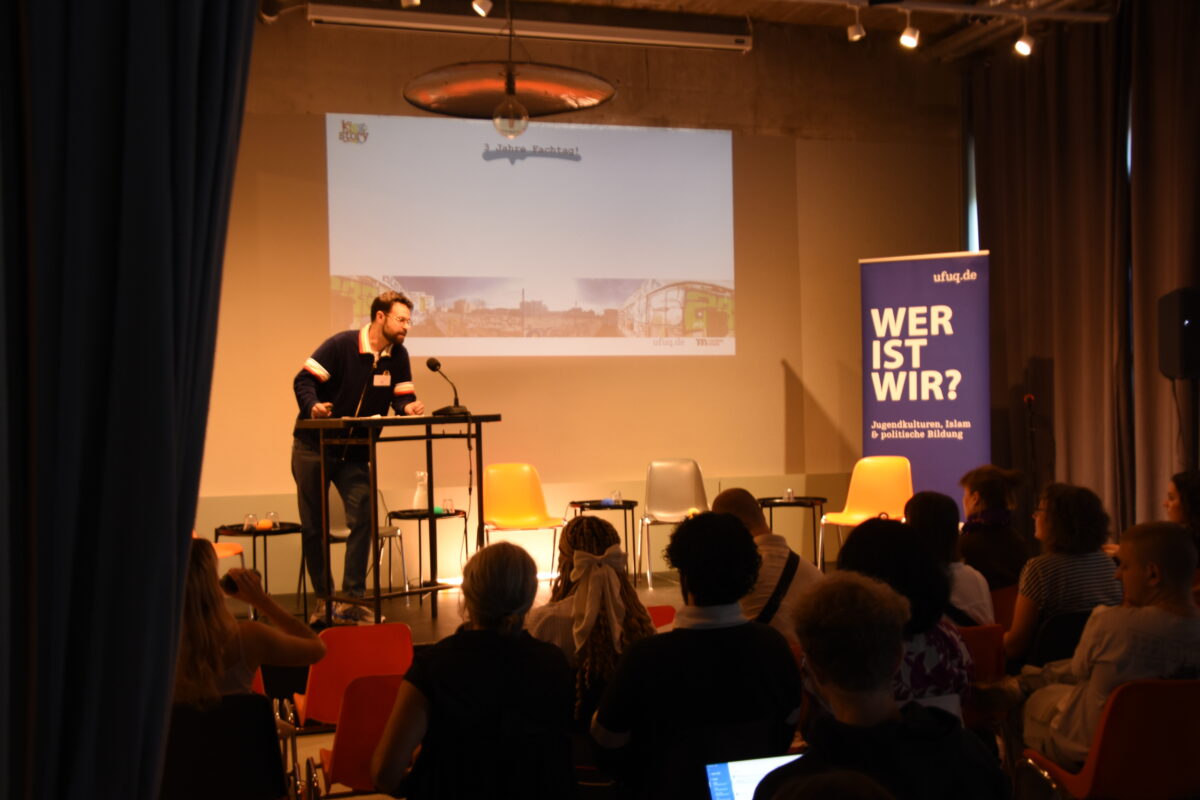 Der Tag beginnt für uns morgens um acht Uhr. Wir treffen letzte Vorbereitungen, weisen unsere jugendlichen Expert*innen ein, kochen Kaffee. Um kurz nach zehn Uhr geht es dann los. Der Fachtag beginnt mit einem Panel zu Neuköllner Diskursen in der politischen Bildung. Diskutiert werden Kontinuitäten in altbekannten Diskursen und Rassismusreproduktion in der Bildungsarbeit. Es folgt die Präsentation der Ergebnisse der Fotoserien aus unserem Workshop mit TheCorner, einer außerschulischen Jugendeinrichtung in der High-Deck-Siedlung. Die Jugendlichen zeigen uns Fotos und ihre Entstehungsgeschichte und berichten von ihrem Alltag.